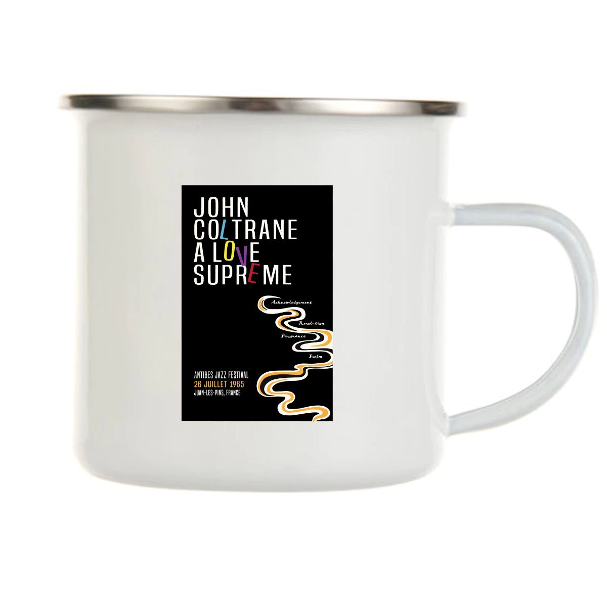 12 oz Enamel Camping Mug with Stainless Steel Rim.